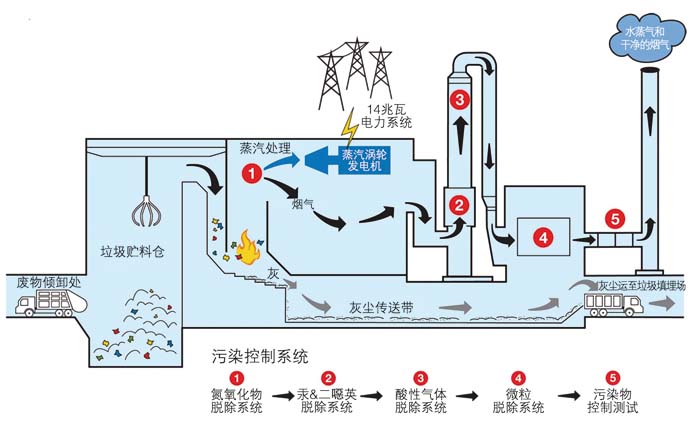現代垃圾(ji)焚燒(shao)轉(zhuan)化(hua)能源示(shi)意(yi)圖 來(lai)源:美國能(neng)源(yuan)署(shu)