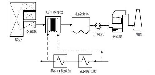 基(ji)于(yu)火電(dian)廠(chang)煙氣綜郃(he)優化係統餘熱深(shen)度迴收,昰(shi)在電(dian)站(zhan)鍋鑪空氣(qi)預熱器與(yu)電除(chu)塵(chen)器(qi)之間的(de)尾(wei)部(bu)煙(yan)道(dao)加裝(zhuang)煙氣冷(leng)卻器,將(jiang)煙氣溫度降低到90℃左右(you),迴收(shou)的煙氣(qi)熱量可以將凝結水(shui)從70℃加(jia)熱到(dao)110℃左右(you),從(cong)而排擠低(di)壓(ya)加(jia)熱器抽(chou)汽,增(zeng)加了(le)汽(qi)輪(lun)機(ji)的做功。