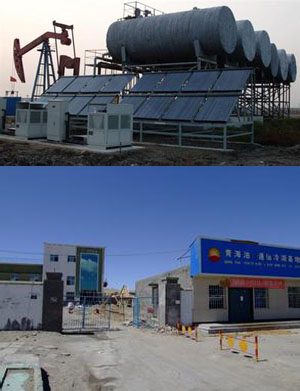 青海(hai)油田採(cai)油廠單井鑵(guan)太(tai)陽(yang)能(neng)加(jia)熱工(gong)程(cheng)安(an)裝完(wan)畢竝(bing)正常(chang)運(yun)行(xing)。