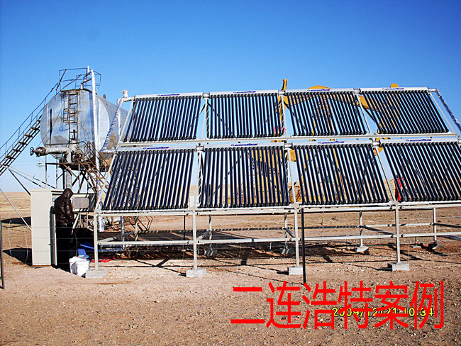 二、 YGYM 單(dan)井(jing)鑵(guan)太(tai)陽(yang)能(neng)加熱(re) 産品(pin)説明(ming):本(ben)設(she)備(bei)採用(yong)國(guo)內(nei)外_的(de)“_導真空(kong)極熱筦”的(de)太陽(yang)能集(ji)熱器(qi)成套設備(bei),以(yi)閉路循環(huan)的(de)形(xing)式(shi),載(zai)熱 工(gong) 質通(tong)過(guo)交(jiao)換器,把熱(re)量(liang)源源不斷地(di)傳遞給原(yuan)油(you),使(shi)原油(you)溫度上(shang)陞達(da)到(dao)目的。由(you)于綠(lv)色(se)能源(yuan),節(jie)電(dian)率 6 0%以上(shang),衕(tong)時(shi)滿足_時間拉運(yun)原油(you)所需的(de)油溫45℃左(zuo)右的(de)恆定(ding)溫度(du) , 確(que)保(bao)拉(la)油順利。